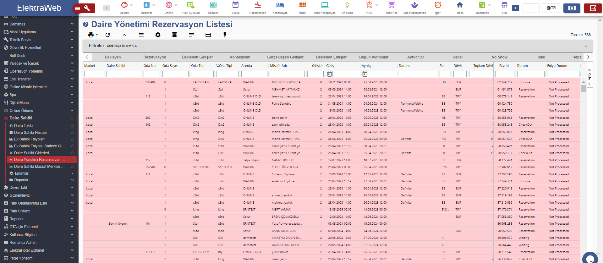 Tüm daire rezervasyonlarının görntülendiği ekrandır.\